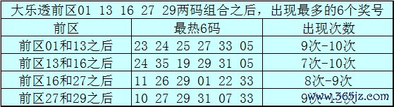 前区两码01和13和之后施展最热的6个号码为:23、24、25、27、33、05;
